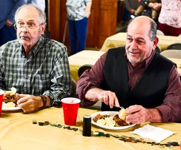 The atmosphere is filled with a sense of community and purpose, capturing the spirit of giving and fellowship.
